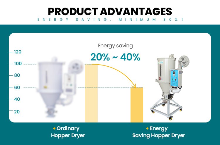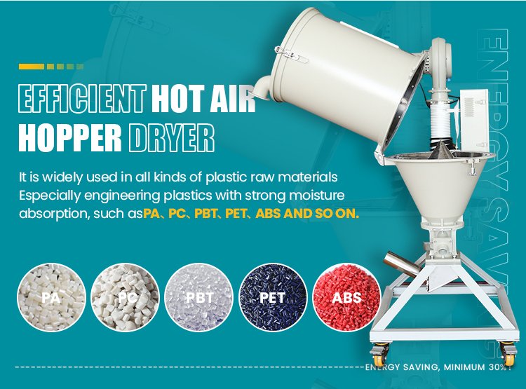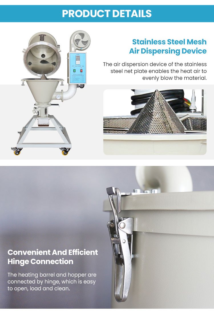 Эта сушилка горячим воздухом — самая эффективная и экономичная модель для сушки пластиковых материалов. Она может сушить влажное сырье, необходимое для упаковки, транспортировки или переработки. Конструкция с прямым соединением особенно подходит для сушки непосредственно на формовочных машинах. Она обеспечивает быстроту и экономит место. Подходит для предприятий, использующих оборудование для машиностроения, для улучшения внешнего вида продукции.